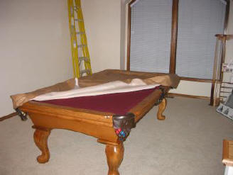 Pool table and lamp installed. Check. |